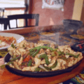 Tender sliced steak or chicken cooked with bell peppers, onions and tomatoes, served with beans, rice, lettuce, guacamole, sour cream, pico de gallo and tortillas. $15.99